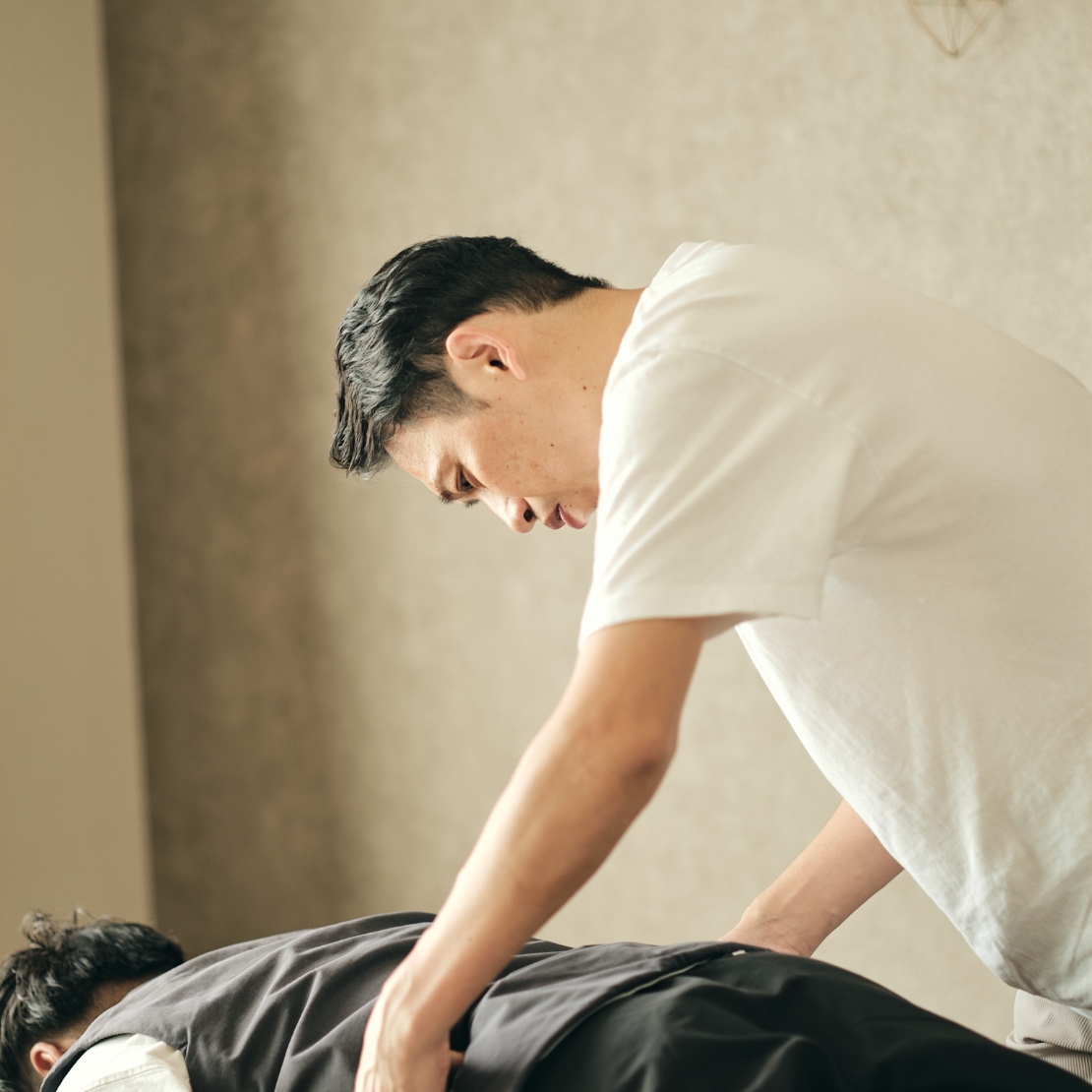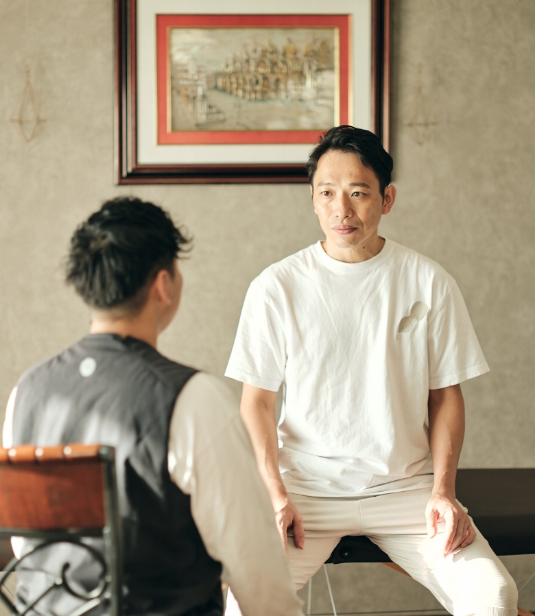 その時の感動、痛みからの解放、歩けることの喜びは今でもはっきり覚えています。おばあちゃん先生との出会いが、僕が治療家を目指すきっかけとなり、古武術や体の仕組みを応用した独自のメソッド「調律整体」を確立。足元から整えることでケガをしない体をつくり、体本来の力を100%出せるようになります。
